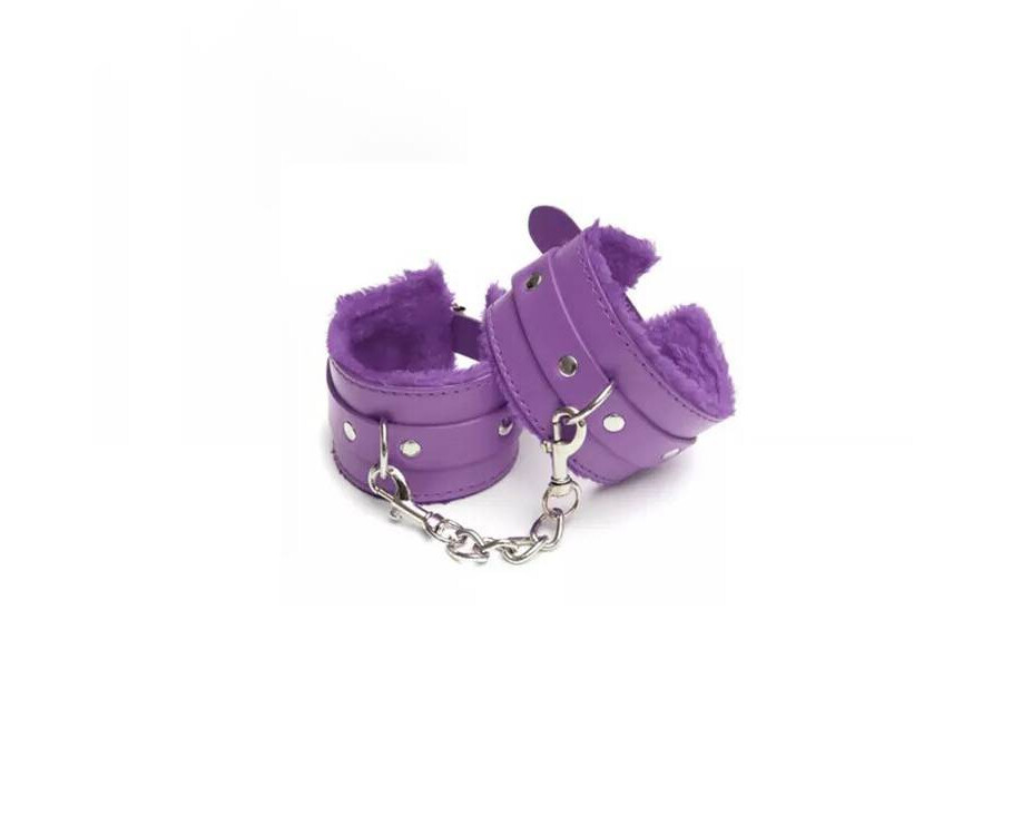 Кожени белезници с пух лилави